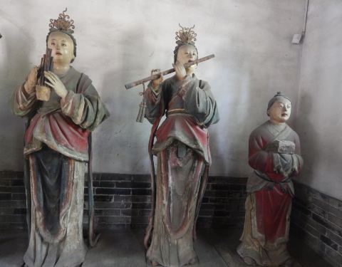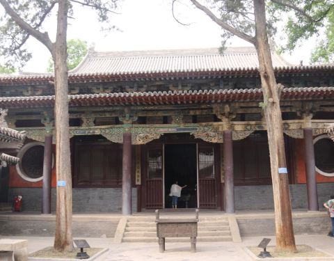 晋祠里的一座古建筑,古香古色,正殿里有唐叔虞像。配殿里有元代侍女塑像。