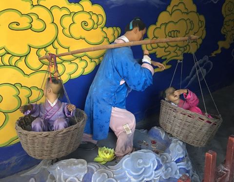 实话实说挺吓人的,屋子里站着落满灰尘的七仙女与牛郎,还有其他两个故事。跟闹鬼的一样。吓我一跳,有些粗制滥造了。
