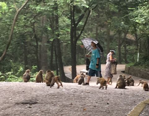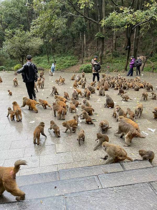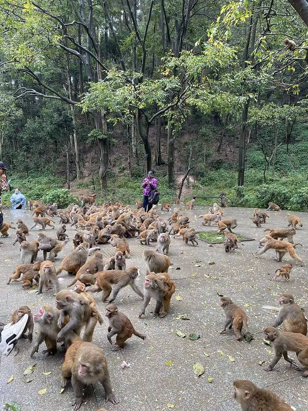 这一部分看猕猴的地方就在黔灵山公园内,不需要额外购买门票。 很多猴子,大大小小的,就在山林间和马路上溜达,散养的,不怎么怕人,挺活泼的。一定要保护好自己的包包、手机和吃的,别被猴子抢了去。 总的来说还蛮有趣的。