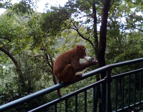 三岭湾猕猴观赏园是在黔灵山景区内,虽然是说在三岭湾,但是不一定是在三岭湾就能看到猕猴,可能是天气原因,我到防时是到麒麟洞再上点才看到猴子,这的猴子没有峨眉山的那么凶,这抢也只是抢些小红袋装的。