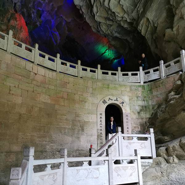 银河宫实际上是一个洞。里面有三层,整个洞还是蛮深的。,洞中还有石桥直接连接在两座悬崖中。确实很赞。