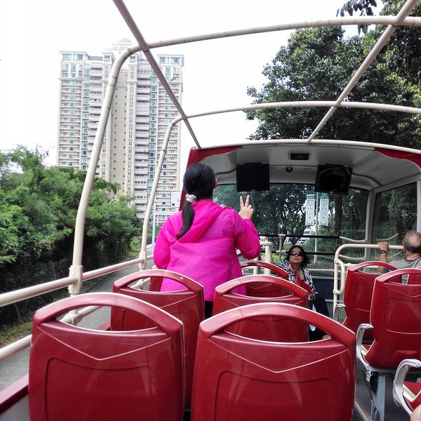 因为是带着孩子去澳门,所以就选了开蓬巴士,热是当然的了,不过能从车顶一路看看澳门,也是不同的视角