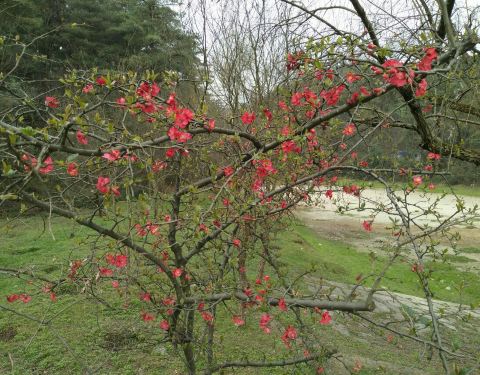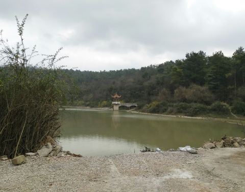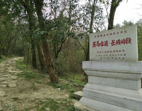 贵阳多山地,,很多景点不通公交,步行骑车也不方便。这个公园离驻地2.3公里,百度地图建议步行前往。按图延公路走了不止3公里才算抵达,路上行经柴屋饭馆,烤全羊餐厅,估计是旅游旺季游客的美食选择之地。公园里樱花开了,茶马古道长坡岭段位于山中,古道一侧直通樱花湖,湖水很浅,一半已经干涸变成草坪,公园正在整修,游客稀少,空气不错,景色宜人,是个不错的去处。