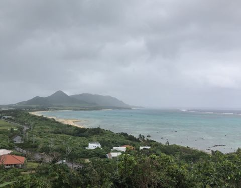 玉取崎展望台是石垣岛东侧的一个高台展望台,视野绝佳,超过180°,可以眺望从南部的野原崎到最北端平久保崎的风景。从这里向西远眺,可以看到伊原间湾美丽的白色沙滩,往东则可以一睹蓝珊瑚礁和沙滩。据说,这里也是每年夏天观赏日出的最佳场所。可惜我们去的当天已经是傍晚,云层有些厚,海看起来没有那么通透。如果天气好,云层散去,这里蓝天白云、碧海看起来一定更美。