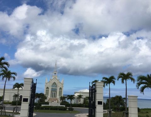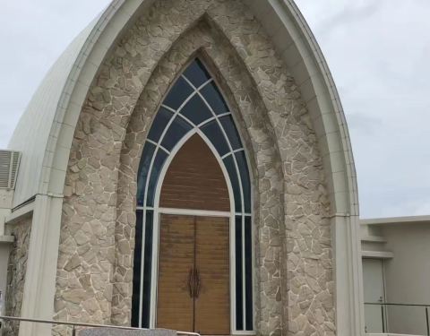 艾葵雅教堂介绍:艾葵雅教堂以“水”与“恩赐、优美”为理念,是一座由琉球石灰岩柱构建,彩绘玻璃装饰点缀
