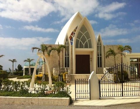 一个美丽的白色小教堂。就在从那霸到海洋博公园的半路上,一个叫残波岬的地方。门脸不大却很深就在从那霸到海洋博公园的半路上,一个叫残波岬的地方。一个美丽的白色小教堂。门脸不大却很深。这个教堂名气很大,很多国内的情侣也在这里举办婚礼。蓝天白云碧海白教堂,谁不喜欢呢?