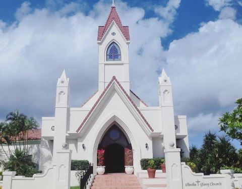 在去海洋博公园路上特地叫司机带我们去看一下冲绳最美丽的教堂 被白色教堂惊艳了 看见里面正在举办...