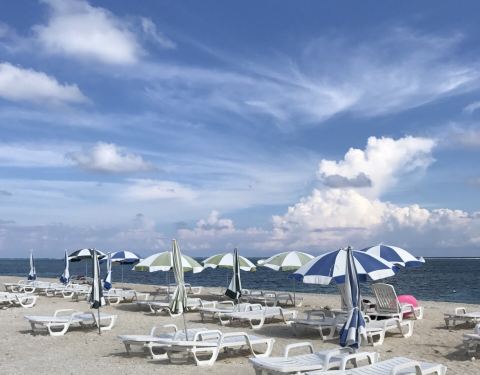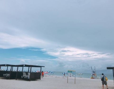 ...以及贝壳的碎片,不那么柔软,但是非常洁白,沿岸海水的透明度也非常高,即使在阴天也能看见蓝色大海