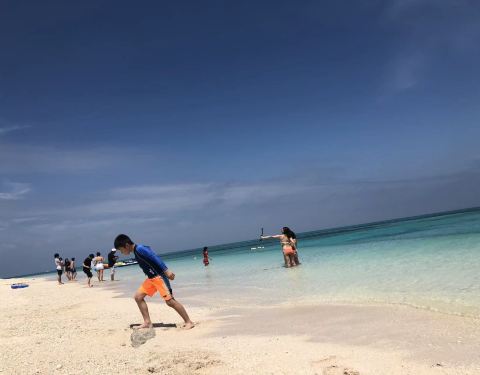 离冲绳本岛比较近的无人岛,泊港提前购票,坐船过去半个小时左右。每天上岛的人不多,午餐包含在船票,比较单调,无人岛么不强求了,想吃舒服的话建议自带一些食品。岛上风景不错,沙滩是珊瑚沙滩为主,细沙也有,寄居蟹非常非常非常多。岛上娱乐设施和活动另外收费,可以自行选择。总的来说,过来放松一下心情还是很不错的,孩子玩得特别开心。一定要注意防晒!