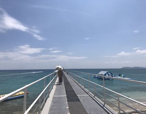 这是距离冲绳首府那霸市非常近的一个无人岛,从那霸泊港码头乘船出发仅需20分钟。 小岛的沙滩主要是珊瑚海滩,有比较多珊瑚以及贝壳的碎片,不那么柔软,但是非常洁白,沿岸海水的透明度也非常高,即使在阴天也能看见蓝色大海。