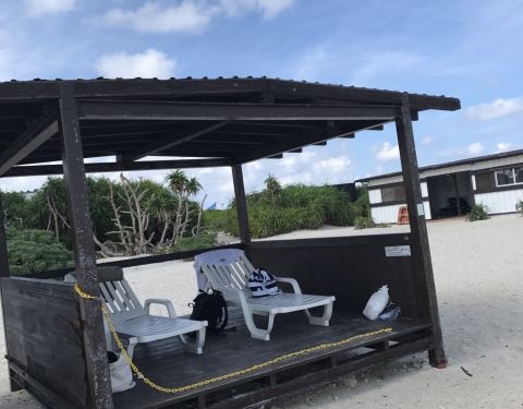 今天白天要去无人岛Nagannu Island体验海底漫步!所谓无人,是因为上岛限制人数,每天只接待一定数量的客人,上岛和离岛都数人头的,不能在岛上过夜, 不能自行前往。一大早就先来这个地方登记报名,买船票~一般来说,这岛只在4-11月开放,每天1班船往返,7-9月增至3次往返。买船票登记信息。船来了就出发了,大概20分钟就能到达,从市区过去还挺方便的呢!靠岸后,这海水的颜色,真是惊呆了我,太清澈了。之所以无污染,是因为大家保护的好,吃的东西不能带上岛,包括各种垃圾都随身要带走,同时进行潜水等活动也不建议涂抹防晒霜,因为防晒霜也是污染海洋的。很漂亮有木有!上岛咯!回头拍一张照~沙滩上有两个遮阳场所,一种是遮阳伞和遮阳椅;另一种是小木屋。其实小木屋好,不过我们到的时候已经都被租完了,所以就只能租遮阳伞遮阳椅了,还是略微会有些晒。沙滩上有两个遮阳场所,一种是遮阳伞和遮阳椅;另一种是小木屋。其实小木屋好,不过我们到的时候已经都被租完了,所以就只能租遮阳伞遮阳椅了,还是略微会有些晒。