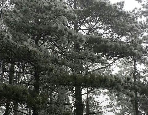 去的时候气温在零下,加上大雾,看到了美丽的雾凇景观。驱车驶离大路走很长一段碎石路才能到达