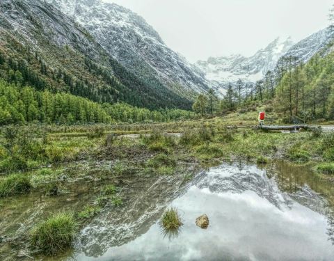 上下干海子是四姑娘山长坪沟景区内的二处景观,曾经的海子就是湖,干海子就是干枯的湖,现在长满了草与树了,成为了长坪沟独特景致的一个部分了。