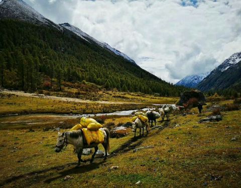 上下干海子位于四川阿坝小金县日隆镇的四姑娘山风景区长坪沟的最里面,一般情况下都是骑马才能到达的,也有个别体力好的人走进去,有点费时间,但景色很好的。