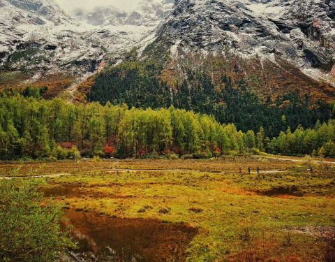 干海子是四姑娘山的一处景点,海子原意是湖,干海子就是干涸的湖 十月底,当江南还处处草木葱蓉 四川阿坝已经处处层林尽染 秋意正浓 下面是朋友发来的图片 美不胜收。