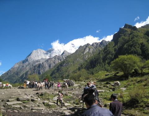 这里已经过了木栈道尽头,需要走马道到大本营附近,所谓“海子”就是两个比较开阔的水塘,到枯水期就干涸了
