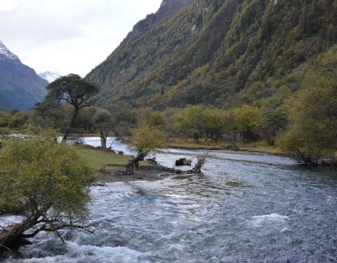 撵鱼坝位于四姑娘山双桥沟景区。步道有1.8公里,溪流中可以漂流代步。景点有河流,草甸,沙棘林和放养的牦牛,构成了一幅恬静的田园画和诗画般的奇境。