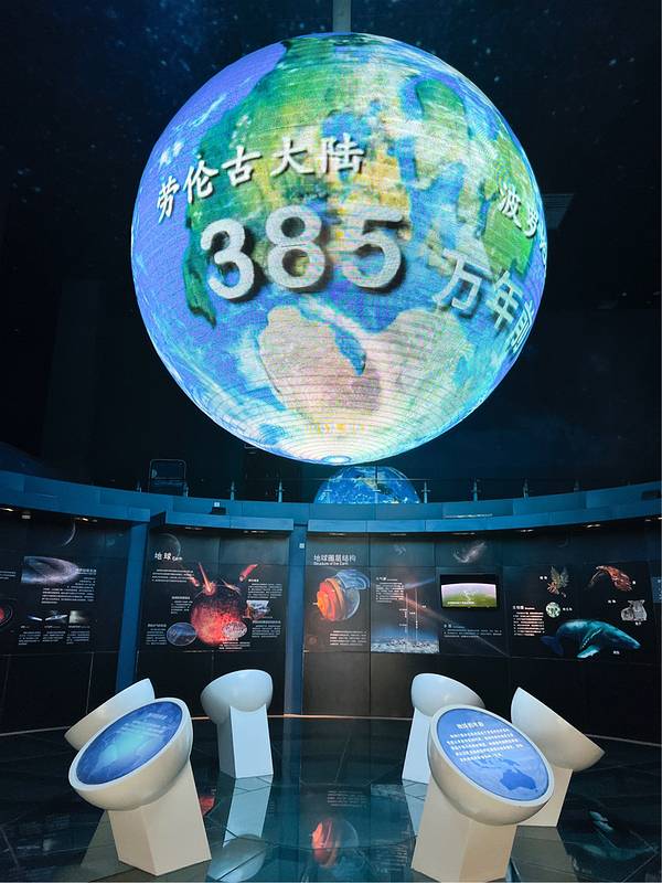 过了《序厅》,首先第一个直奔主题《地球厅》展区,这里以“地球---生命的摇篮”为主题,用一个曲面LED地球动态介绍地球的演化历史,让你身临其境。
