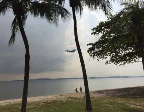 因为这个海滩里樟宜机场非常近,所以能够看到刚刚起飞的飞机和即将着陆的飞机,海滩上的人非常的多,...