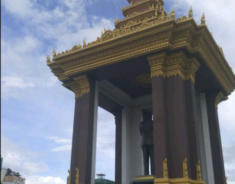 西哈努克对于柬埔寨来说是非常重要的一个大人物,他的铜像就屹立在一个小广场上,广场并不大,但可以...