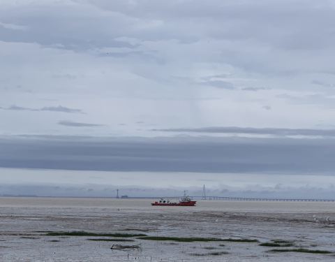 很多人到岸堤上抓非常迷你的小螃蟹,岸边停着一排渔船,夕阳西下,风景宜人,公园内有许多小孩玩的摊...远眺跨海大桥,退潮时,很多人到岸堤上抓非常迷你的小螃蟹,岸边停着一排渔船,夕阳西下,风景宜人,公园内有许多小孩玩的摊位,收费10元一项,园内海鲜餐厅集中地,味道还不错