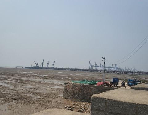 远眺跨海大桥,退潮时,很多人到岸堤上抓非常迷你的小螃蟹,岸边停着一排渔船,夕阳西下,风景宜人,公园内有许多小孩玩的摊位,收费10元一项,园内海鲜餐厅集中地,味道还不错