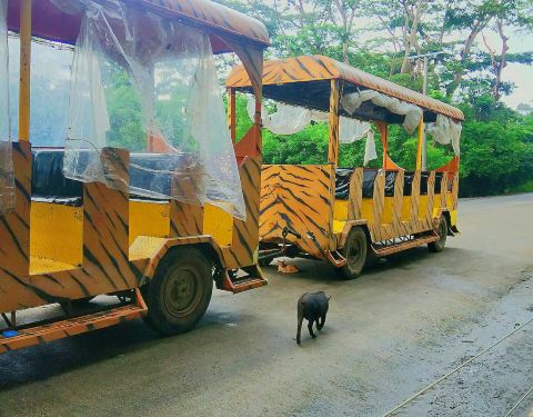 园区小野猪无处不在,随处可见。还有山羊……最值得观看的是坐着铁丝网车上山看的老虎。最精彩了。