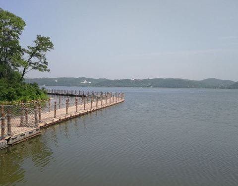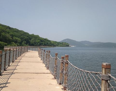 “盛京美——夏日游”(一), “秀湖”位于沈阳棋盘山风景区,由四面捧起的一泓碧水蜿蜒形成了一个“秀”字,故称“秀湖”,沈阳北站乘168公交车,或马路湾有旅游专线公交车直达秀湖广场(或森林动物园),车票5元,沿湖边步道、浮桥、栈桥、跨湖桥、汀步一直到棋盘山脚下,也可继续环河前行,全程15.4公里,景色优美,或漫步,或凭栏驻足……,秀湖是开放景区,免费游览,