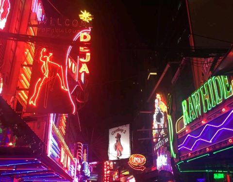 牛仔街曼谷出名的酒吧街,一条几百米的街区大大小小几十家酒吧,白天只是曼谷的一条巷子,晚上十一点之后也成了曼谷夜生活开始的地方,很多年轻人很热闹。
