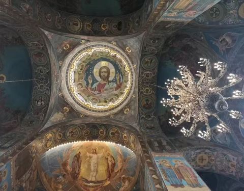 雨一直下不停,只能室内景点游玩了。上午,滴血救世主教堂,壁画全是由马赛克拼贴而成,美轮美奂雨一直下不停,只能室内景点游玩了。上午,滴血救世主教堂,壁画全是由马赛克拼贴而成,美轮美奂。一路过来看过那么多教堂,毫无疑问是最精美的。