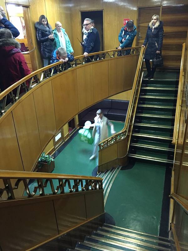 🛳同样,厚重的外套和包包都需要在进去之前寄存。检票的时候还遇到了一只俄罗斯的小猫🐈,忘情地撸了一会儿,果然全世界的喵都是一样的可爱。