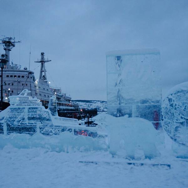 世界上第一艘核动力破冰船🚢,现在退役后作为博物馆,停泊在摩尔曼斯克码头。破冰船的冰雕