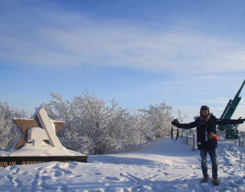 去这个纪念碑,让我感到有意外的收获,一定要赶到落日的时候去才最美,茫茫雪地,遥遥银枝在饥寒中显得高洁清丽。阿廖沙静静的出世港口透着银白色的光芒,实在是太美了!