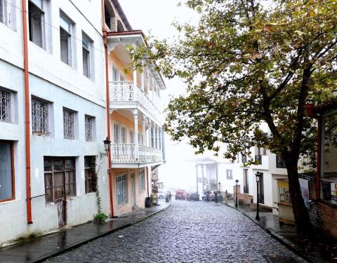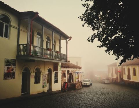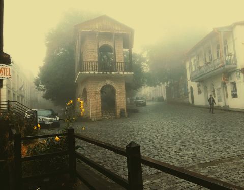 格鲁吉亚的西格纳吉,有着爱情小镇的美誉,十分静谧,到达时候正值浓雾渐散,烟雨朦胧,更有一种世外桃源的幻境之感。西格纳吉也被称之为皇家小镇,是因为公元前二世纪,这里成为格鲁吉亚的皇室所在地。小镇是建在山上,道路不算平坦,上下坡随意切换。因为镇上的婚姻登记处实行24小时开放制,可以满足世界各国的新人登记结婚的要求,于是爱情小镇的美名就传播开来了。小镇的田园风光十分美丽,年代久远的十字路,众多原汁原味的老建筑都完好的保存至今,赋予了小镇独特的历史韵味,漫步在街上都能够嗅到空气中弥漫着的浪漫气息,西格纳吉是很多欧洲情侣度蜜月的隐匿之地。小镇很小,我估计半个多小时就可以兜一圈集市也很有意思,似乎都不像做生意的,坐在那里拉家常,聊聊天,特产就是那种用坚果包裹胶糖的棍子,外表漂亮,但是口味实在不敢恭维整个小镇都是山路弯弯,地势起伏,建筑都是依山而建,错落有致,可以体会到不一样的风情,如世外桃源一般。