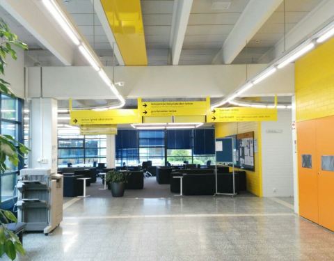 校园由著名设计大师阿尔托设计。校园植物园是两座金字塔式的玻璃暖房,很多珍惜植物。北欧简约设计风
