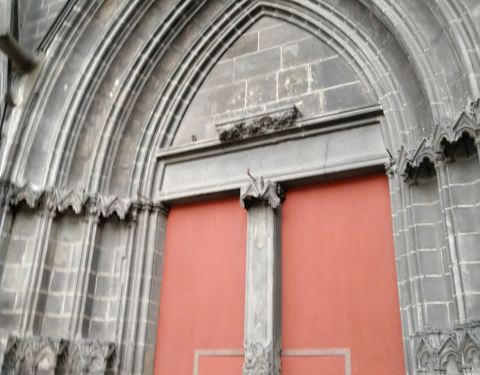 圣母升天大教堂始建于1248年,是典型的哥特式建筑,灵感是来自于巴黎大区île de France的教堂建筑物。这座教堂的独特之处就是黑,不仅整体黝黑,里面的光线也黑——因为它是唯一用火山石建成的教堂。两支“利剑...