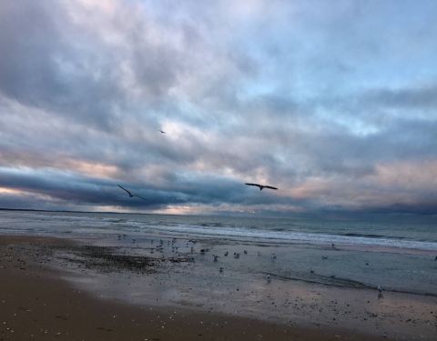 步行至plqge的左侧或右侧,真是太棒了!退潮时,卵石滩很大。海滩周围的餐厅和酒吧,诺曼小镇