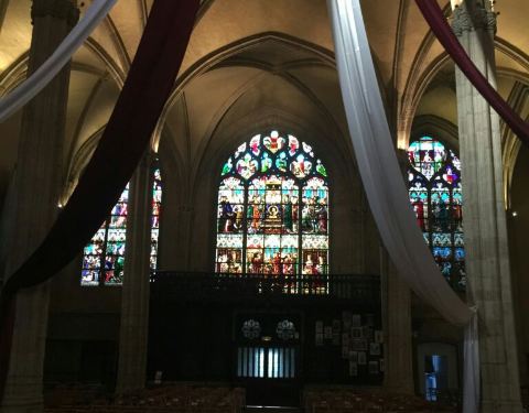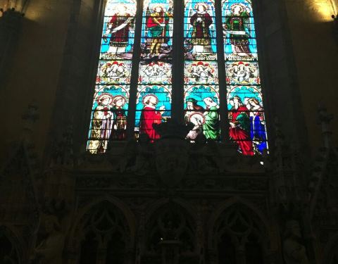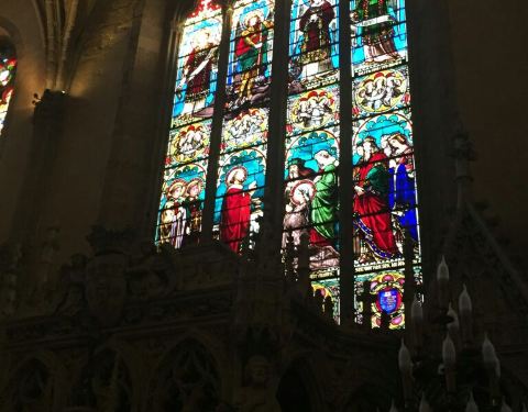 狮子圣米歇尔大教堂同样位于卢瓦尔河南岸,应为门口有两只雄健的狮子雕像而得名。教堂已经有600年的历史,非常的古老,教堂内有很多名人的坟墓和雕塑,阳光透过彩绘玻璃透进教堂,非常的神秘魔幻。