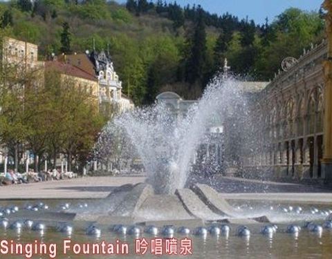 吟唱喷泉位于捷克玛丽安温泉镇。喷泉会每两个小时播放一次美丽的旋律,随着美妙的旋律,喷泉变换不同的形状