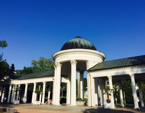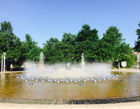 坐落于玛丽亚温泉小镇,在一片绿地公园内,温泉小镇的新城区是一片度假酒店,中间是天然峡谷顺势打造的绿地公园,绿地公园内有各种喷泉小景,最引人注目的就是吟唱⛲️,每两个小时表演一次,会演奏不同的世界名...