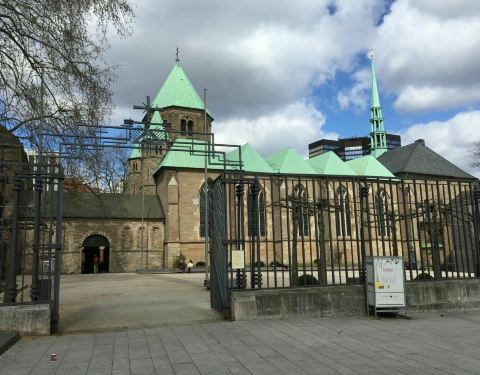 埃森大教堂最为吸引人的不是这里精致的圣殿,而是这里的珍宝馆,在教堂珍宝馆里,你能欣赏到多种多样的艺术珍品,并在这样难得的邂逅中用心体会出属于自己的深切感悟。馆内藏有中世纪初期最重要的艺术品之一,金...