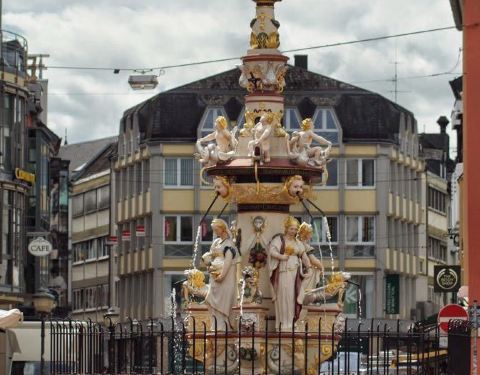 圣彼得喷泉上面站立着城市的保护神圣彼特。市场十字柱是城市中心的象征。