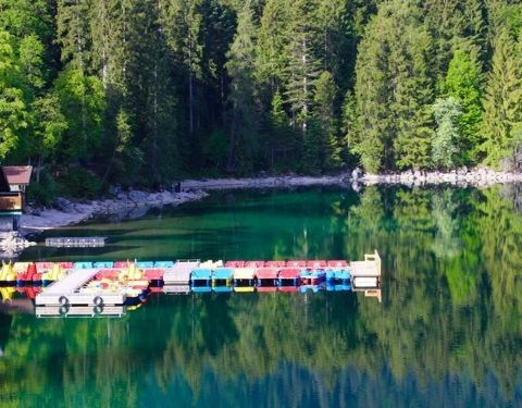 艾泊湖位于楚格峰雪山脚下,湖面清澈见底,湖边有一群野鸭嬉戏玩耍,湖水的颜色呈现多种色彩,太阳出...艾泊湖位于楚格峰雪山脚下,湖面清澈见底,湖边有一群野鸭嬉戏玩耍,湖水的颜色呈现多种色彩,太阳出来暖暖的,坐船在湖中央晒晒太阳,太惬意了