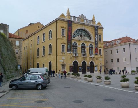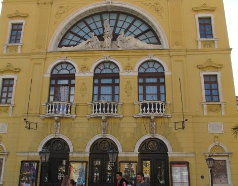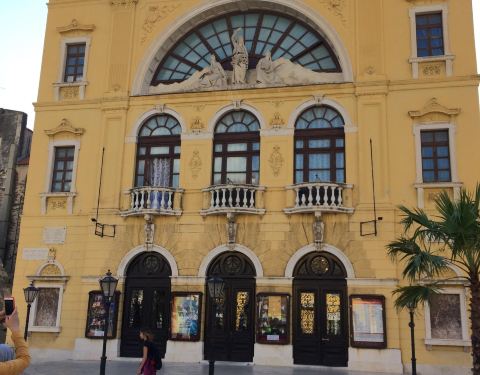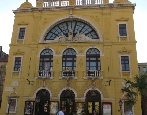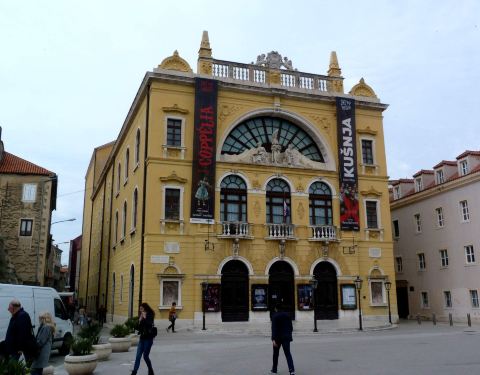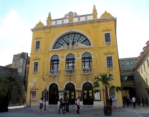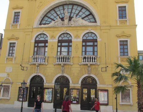 斯普利特国家大剧院是克罗地亚最古老的剧院,建于1893年,黄色的外牆无豪华的外观,主要演出交响乐、歌剧和芭蕾,我们路过此地拍下它的照片。