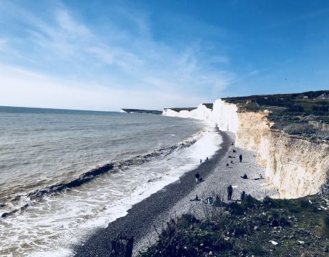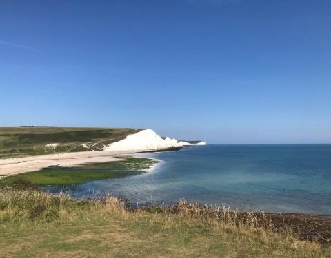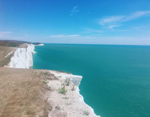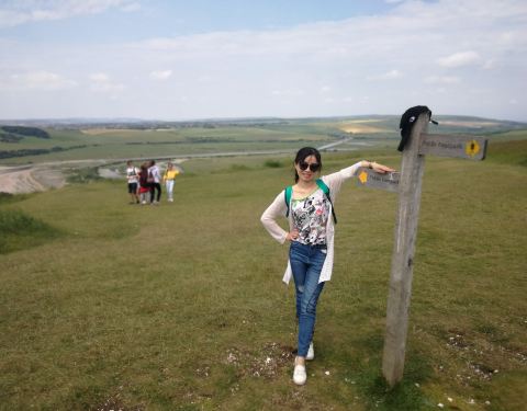 自然风光最美的七姐妹国家公园!那天天气阳光温度非常合适!真的非常幸运自然风光最美的七姐妹国家公园!那天天气阳光温度非常合适!英吉利海峡的水湛蓝湛蓝的~(要知道英国可是老下雨,小伙伴后面几个周末去的时候都是阴天!真的非常幸运!来这里的重点是七姐妹白崖,去到海边要先徒...自然风光最美的七姐妹国家公园!那天天气阳光温度非常合适!英吉利海峡的水湛蓝湛蓝的~(要知道英国可是老下雨,小伙伴后面几个周末去的时候都是阴天!真的非常幸运!来这里的重点是七姐妹白崖,去到海边要先徒步经过一片草原,草地里遍地的野花和蘑菇,远处是成群的牛羊,水里的小鱼,螃蟹也很多,走起来太舒服了。之前听说这边风很大,我们很幸运的没有遇到,但是看到一些树都是歪着长的。向白崖上爬的时候有段坡路感觉不太好走,还不得不手脚并用了一下,路线总结了一下,从布莱顿城坐一个小时公共汽车可以到达距七姐妹4英里远的一个国家公园附近。从伦敦去布莱顿市需要坐1.5小时火车。所以,去看七姐妹需要:先坐40分钟地铁去伦敦某火车站—再坐1.5小时火车去布莱顿市—从火车站步行0.5小时走到公共汽车站—坐1小时公共汽车到公园附近—从公园步行1小时到达七姐妹。单程超过4.5小时,生命在于折腾!哈哈哈! 展开