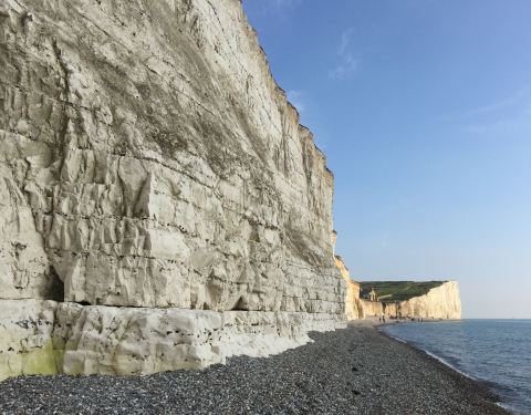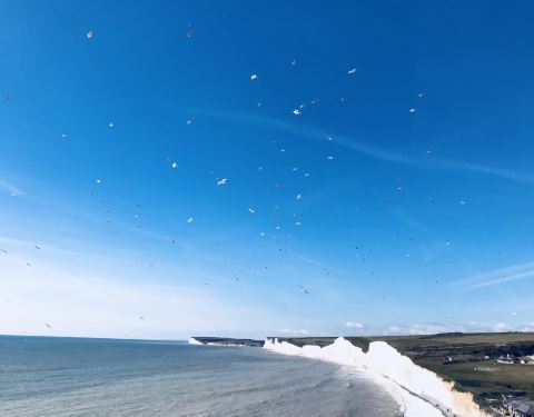 七姐妹国家公园紧临英吉利海峡,如此独特的名字源于这里主要的景观——七座相连的白垩断崖(White Cliffs)。这处断崖绵延起伏数公里,约170米高的悬崖峭壁和海滩近乎垂直,令人心中生起万分敬畏。而纯白色的崖体和崖上翠绿的草地互相映衬,也构成了令人惊叹的景观。 白垩是什么?白垩,又名白土粉、白土子、白埴土、白善、白墡、白墠,是一种非晶质石灰岩。我们熟知的地质年代中生代的末个纪白垩纪,就是因欧洲西部这个年代的地层主要为白垩沉积而得名的啦~古时粉笔通常用天然的白垩制成,白垩也是瓷器表面釉料的成分之一。白垩纪时期发生了闻名的灭绝事件,包括恐龙在内的大部分物种遭受灭顶之灾,七姐妹悬崖这一白垩断崖如此完好的保存至今,在英国的断崖海岸线中占据重要一席,也足够令人感叹了。 公园适合散步、观鸟,放松心情。天气晴好的时候,七姐妹的崖壁与碧海蓝天交相辉映,拍出的照片非常好看。2009年,悬崖的风景照还入选过微软Windows7官方桌面壁纸。 海风凌乱了发,浪花拍打着悬崖,浪潮汹涌而来又退去,如此的循环往复中时光的轮盘静静的转着。瞬间与永恒,渺小与伟大都被重新思考与定义。无论你是热爱文学的文艺青年还是对自然、地理感兴趣的好奇宝宝,或者你只是纯粹热爱美景的观光者,七姐妹都能让你感到不虚此行。