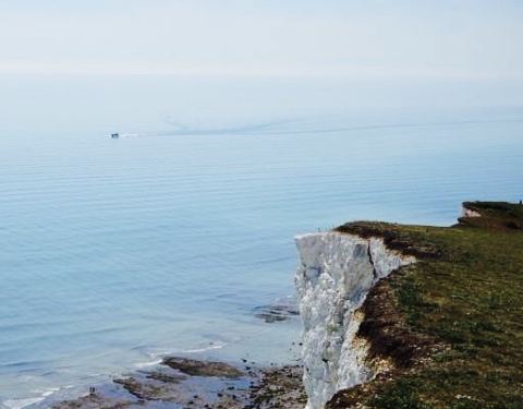 翠绿的草地、纯白的悬崖与蔚蓝的大海共同组成奇妙、唯美的风景画。