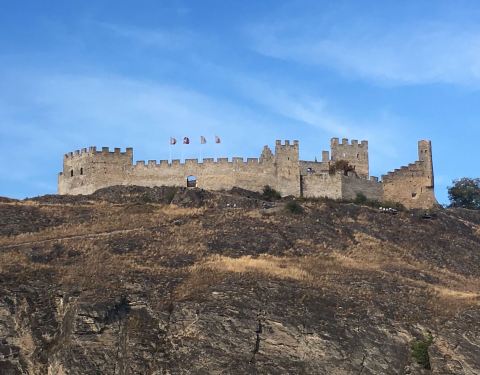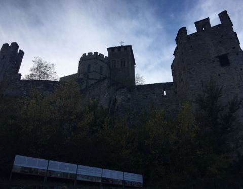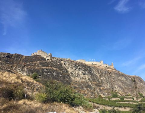 开车从瑞士策马特到法国霞慕尼的途中,远远看到城堡耸立在山中,很是威严。于是停车走上去看,下午5点关门,我们进入时已经4点40份,博物馆没有看因为工作人员说时间太短,要付费不值得,让我们就在外面参观一下,的确依山而建很有气势,下面还有大片葡萄园。