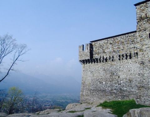 贝林佐纳(Bellinzona)保留着阿尔卑斯山区仅存的中世纪军事防御建筑,即三座城堡,其中一座便是萨索科巴洛城堡。阿尔卑斯山横亘欧洲中部,贝林佐纳恰巧处在跨越阿尔卑斯后进入南欧的交通要道上,自古以来这里便是兵家必争之地。所以这里修建了许多城堡。
