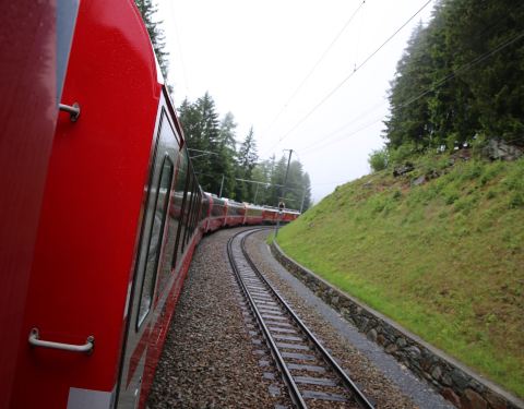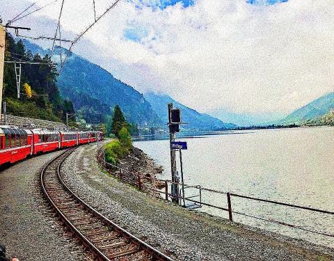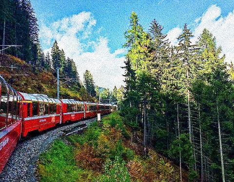 伯尔尼纳快车是一列横跨阿尔卑斯山的鲜红色列车,旅程从库尔镇开始,终点在意大利北部边境的地拉那。只要坐在这高速列车,你可以尽情的欣赏冰川和山峰等众多美景。